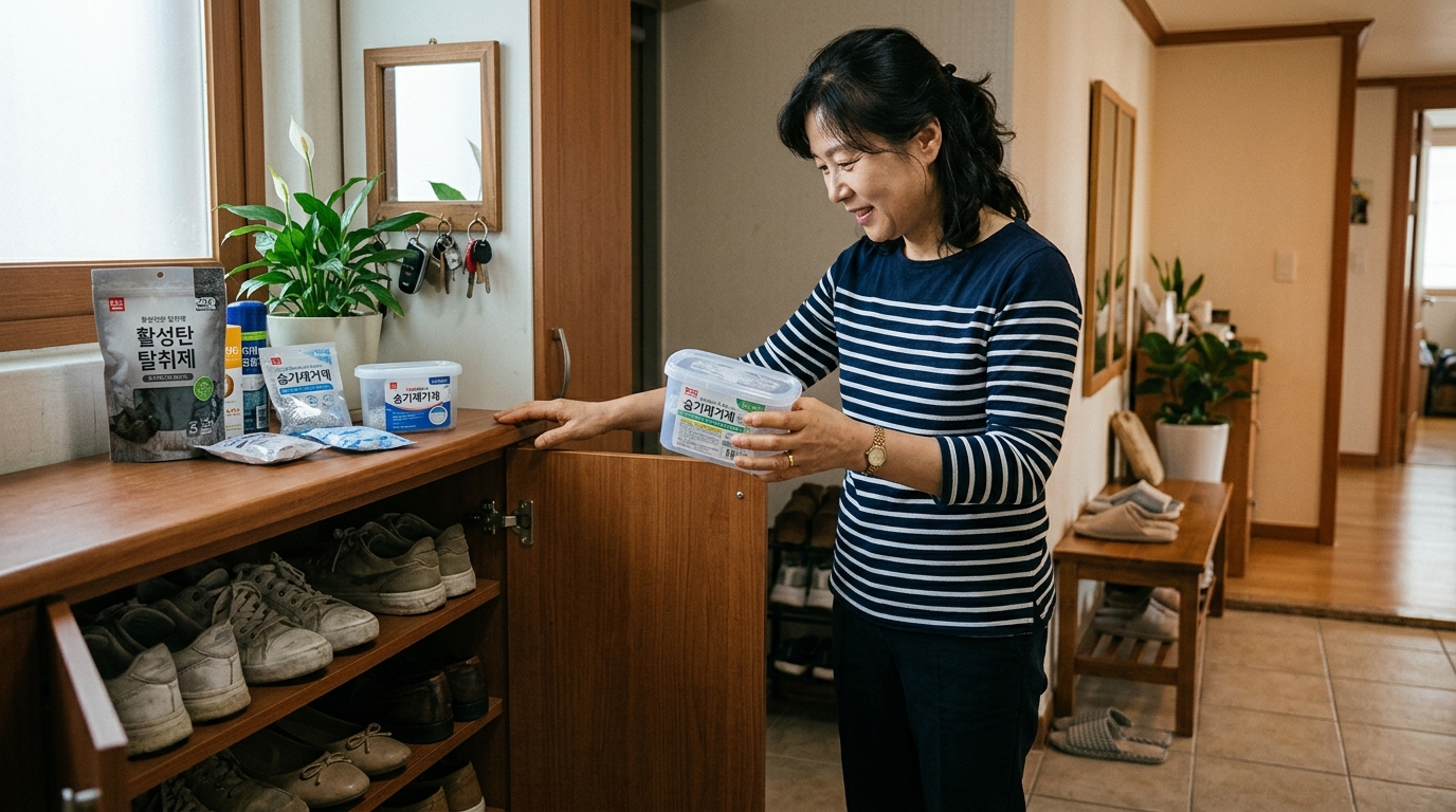 신발장에 탈취제나 제습제를 넣어두더라도 이미 효과가 다했거나 위치가 적절하지 않으면 체감이 거의 없을 수 있습니다. 또한 신발장 문을 너무 오래 닫아두기만 하면 냄새가 쉽게 갇힙니다. 그래서 환기와 제습 도구 상태도 함께 보는 것이 중요합니다.